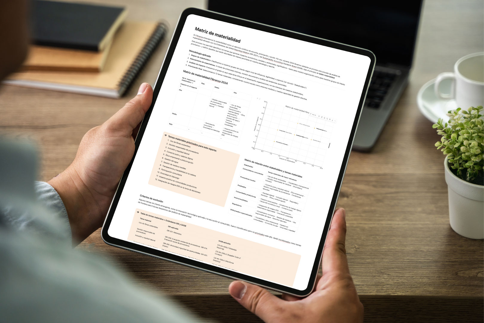 - Bases de datos conectadas (materialidad, stakeholders, impactos, etc.)